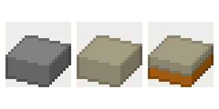 中央のブロックは、上を『乾いた土』に下を『湿った土』にしたもの。地層っぽい表現に使えます。
