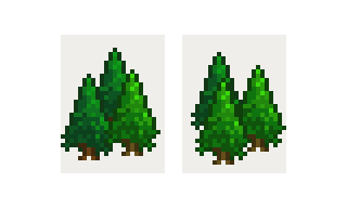 今回も、森などの木の密度が高い場所用に1マスに木が3本立っているものを作ります。