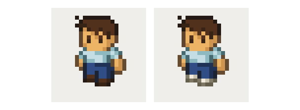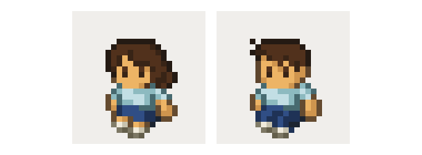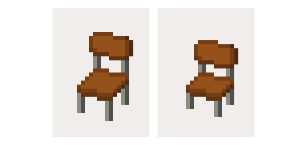 あらためて見直すと、座面が前後に広すぎますね。そこで、座面の前方を1ドット狭くし、ついでに足も1ドット短くしてみます。