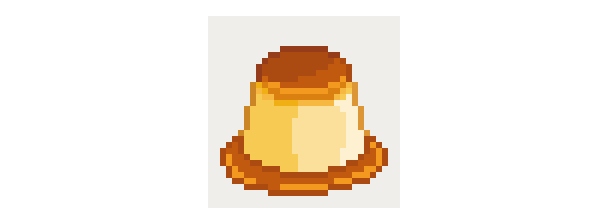 とはいえ全体像が見えてくる前に細部にこだわるのは良くないので、プリン本体の形状は概ねこれでOKとしましょう。先へ進めることにして、ここでキャンバスを32x32ドットに広げます。
