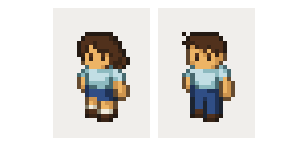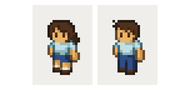 なんだかドット絵を描くことそのものより、男女それぞれに配慮しなきゃならないことの方がたいへんな気がしましたが、以上で完成です!